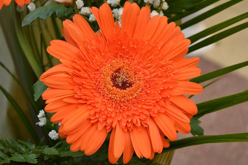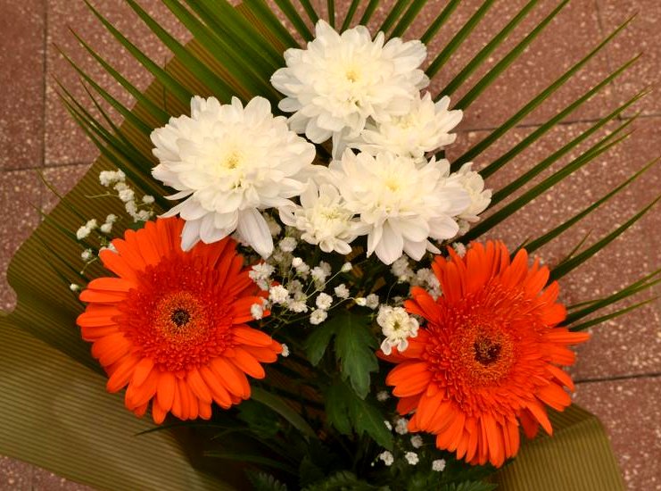 Aranjament floral cu crizanteme si gerbera